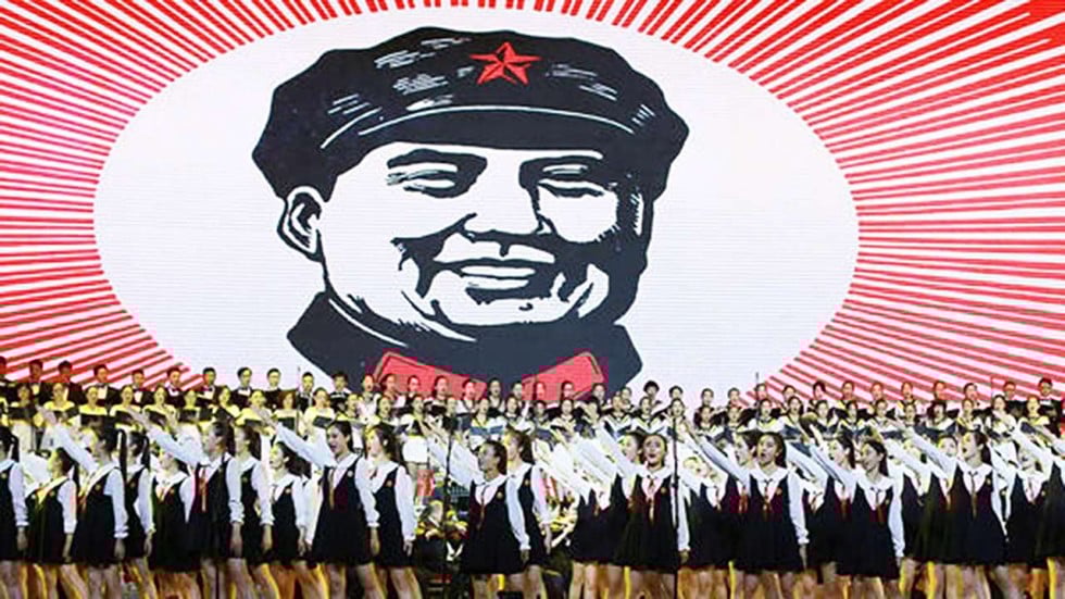 Photographs of the concert on Monday evening showed performers singing against the backdrop of a huge screen, which flashed images such as photographs of Mao and Xi, as well as propaganda posters from the Mao era, including the Cultural Revolution.